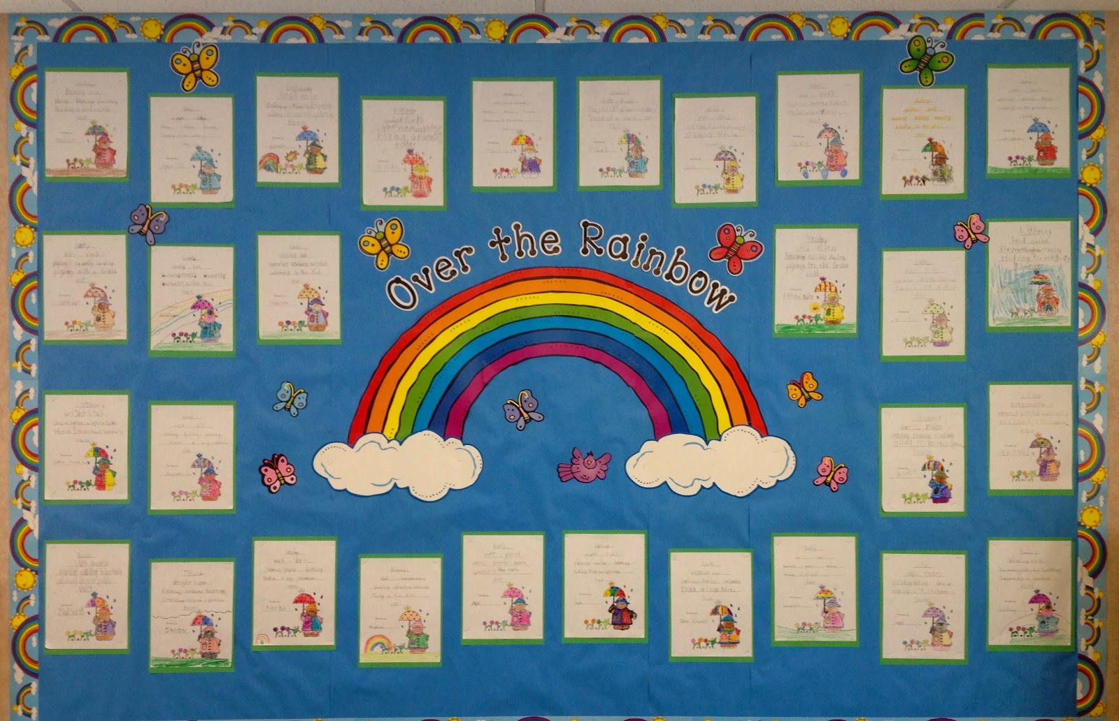 I just have to say….I am WAY jealous of all your boards!! I have 4 boards – smaller than the width of my arm span 🙁 and I'm lucky to get all the kids work up there, so there's NO decorating them…