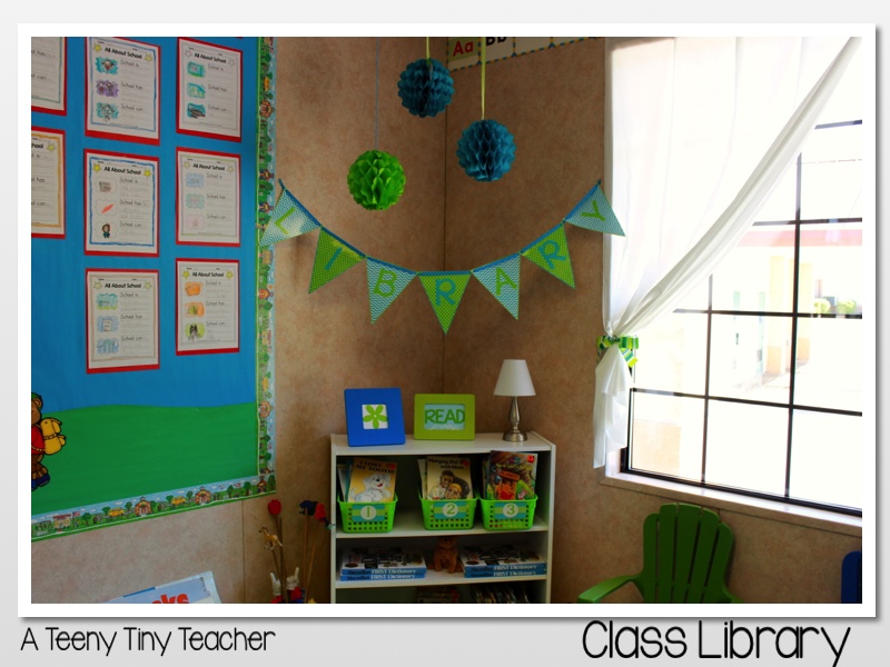 Oh, I love your lime and blue… it's like a breath of fresh air! ๐ Adorable. I have to laugh about the hanging things… we are NOT allowed to have ANYTHING within 2 feet of the ceiling. Fire Marshal rules and our school gets mega fined if we break them. And you don't want to be the one breaking the Fire Marshal's rules and costing the district a bunch o money, right? Yeah. Me neither. So bummer on that. ๐