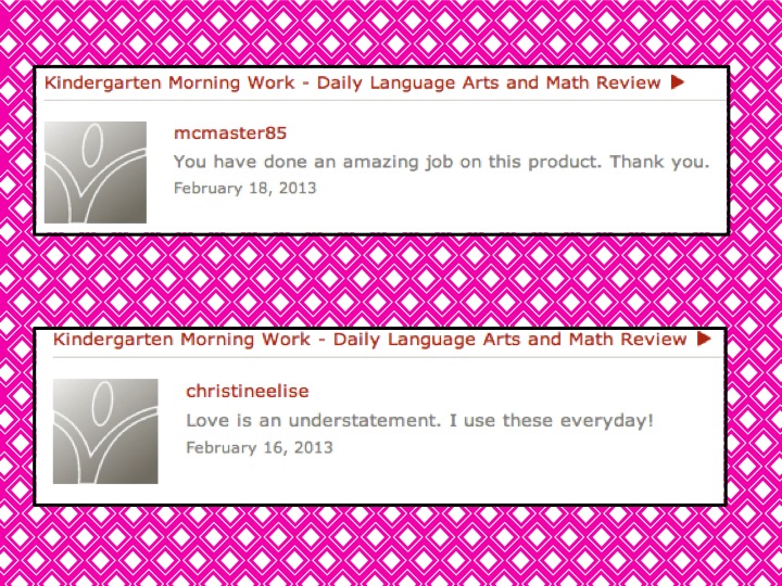 Sometimes, I get feedback that says “great” or “thank you” and I love those, too. Any little bit of encouragement is always helpful, especially when you’re me and obsess over whether or not you did a good job because you teach first grade and made a kinder morning work pack. I mean, who does that?