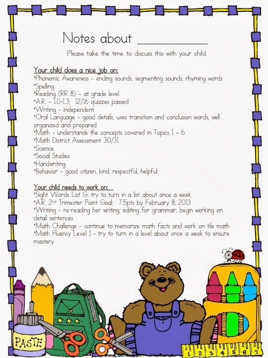 and those conferences notes are wonderful… we had our conferences on Friday which was yesterday and I could have used these ๐