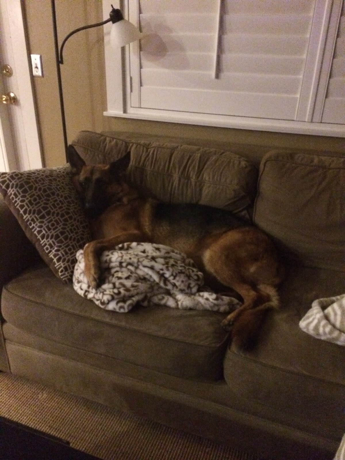 She is so spoiled that I let her stay in my spot and I squeezed in between her and Steve and was pretty much uncomfortable for the rest of the night which is why I went to bed at 8:30.