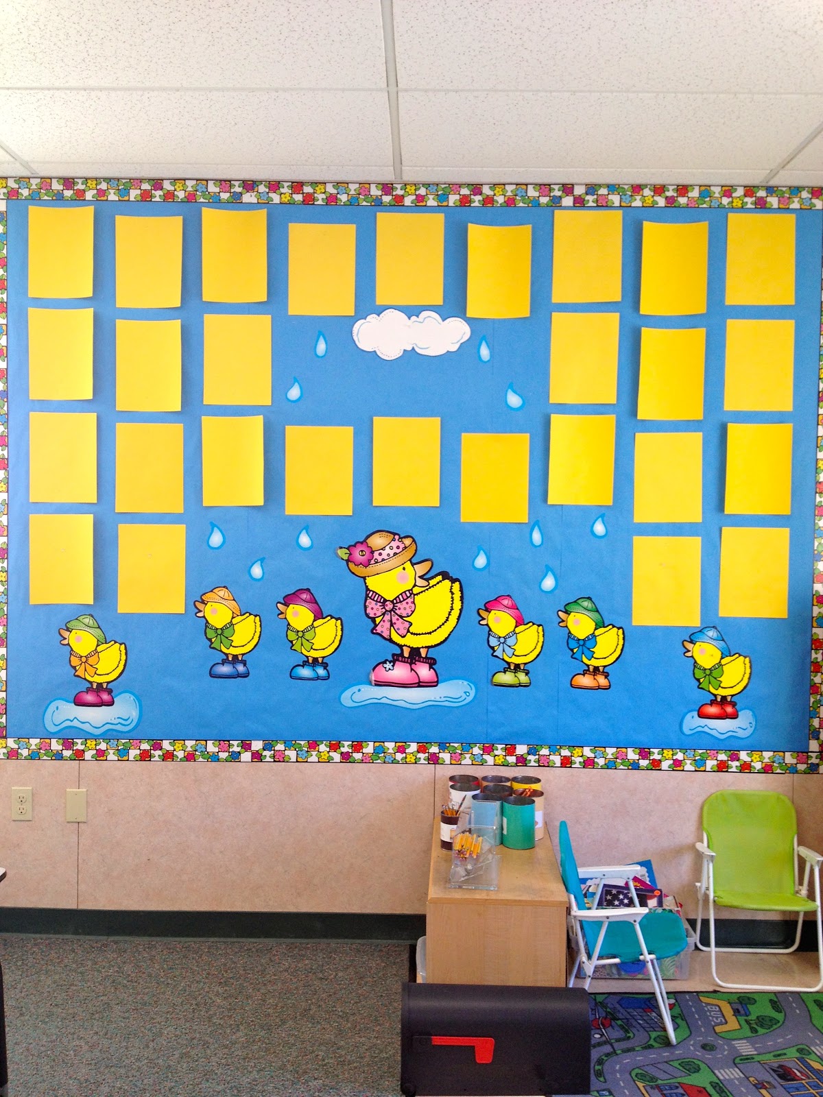 I’m in the process of changing my winter bulletin boards over to spring. Yes, yes, I know, it’s not spring yet. But I was over the snowmen and the snow (says the Californian). It was time for these cute DJ Inkers ducks . . . I just need a title. Any ideas?????
