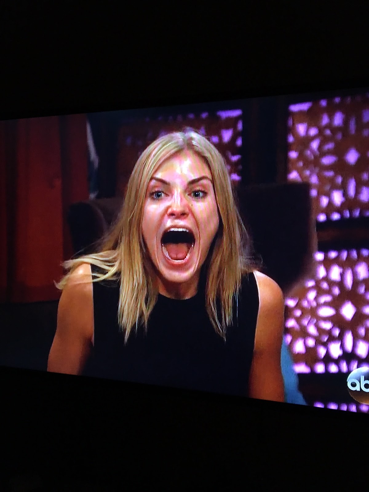 Meanwhile, back at the mansion, the doorbell rang, so all of the remaining girls not on the date FREAKED THE FREAK OUT because IT WAS A DATE CARD, IS IT A DATE CARD? IT’S A DATE CARD!!!! And Olivia, Dimples Girl, First Impression Rose Girl, News Anchor Girl (this is all the same person, I’m just being thorough because I’ve called her a lot of different things) went nuts and I am not kidding. See for yourself: