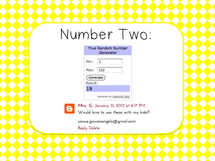 Before I can announce the winners of the Kindergarten Morning Work {continued} pack, I have to say that when installing “reply to comments”, I think I took away my numbered comments. Because they aren’t there anymore and I have looked EVERYWHERE. And they are not there. So I did some searching online, and from what I can tell, you can’t have both. Which means I might have to start using Rafflecopter. And that scares me because I enjoy clicking on the “generate” button of the Random Number Dot Org box. It is just very exciting to me, like that one time when I was in Vegas and put a quarter in and won $100 or something outrageous like that. Or that other time, when I got married there, and didn’t win anything except my husband. Not bad, I say.